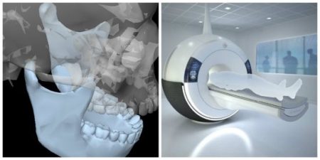 МРТ височно-нижнечелюстных суставов позволяет увидеть мягкие ткани, мениск и положение мыщелкового отростка относительно суставной впадины. Съёмка делается в закрытом и открытом положении рта, чтобы оценить подвижность и смещение диска.